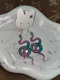 Orecchini in argento sterling e serpenti in resina. Realizzabili in qualsiasi colorazione