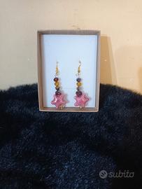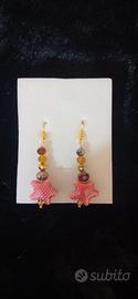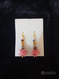Orecchini pendenti con pietre in marroncino trasparente e una stella marina in ceramica colore cipolla...in confezione regalo...