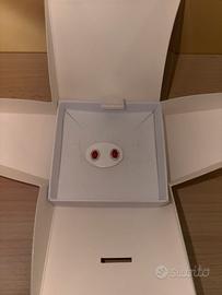orecchini con una splendida pietra di corallo rosso risplende circondata da un delicato bordo di zirconi, aggiungendo un tocco di luce che valorizza ogni movimento