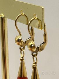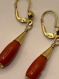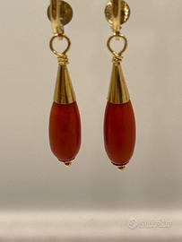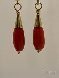Orecchini a goccia in corallo montati su oro 18 kt. con due chiusure importanti e sicure. Spedizione con subito