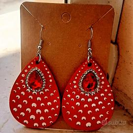 In legno, con inserto in resina. Dipinti a mano con tecnica del puntinismo.