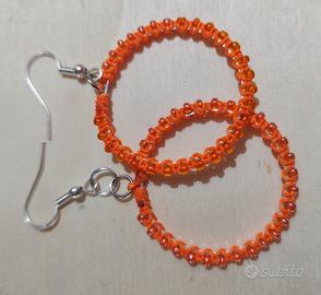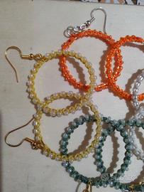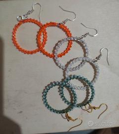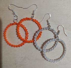 Orecchini a cerchio in micro macramè e perline. Disponibili in diversi colori.