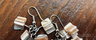 Orecchini in madreperla, con sfumature beige e sabbia, anima in materiale anallergico, aggancio ad amo.