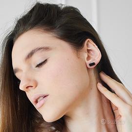 La pietra è lunga 10mm, è di forma cilindrica e rimane molto aderente all’orecchio. Orecchini realizzati con pietra naturale. Il fermaglio è costituito da un perno in titanio di qualità medica con un fermaglio in silicone