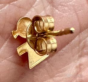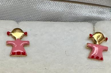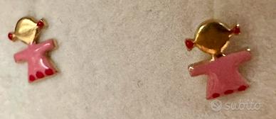 Orecchini/ boucles d’oreilles per bimba in oro giallo 18k con smalti rosa e chiusura a farfallina. Nuovi con scatola e addatti come regalo per un battesimo o cresima. Coprono bene il lobo anche per chi ha un orecchio sottile.