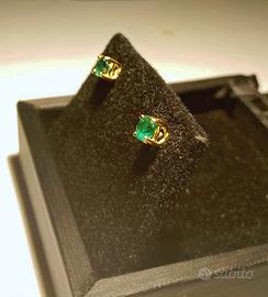 vendo due orecchini da danno/uomo eleganti e fatti su commissione da un artigiano locale. gli smeraldi montati, selezionati dal gemmologo, sono l'uno diverso dall'altro proprio per la