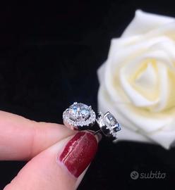 Orecchini a sacca rotondi realizzati in oro bianco 18 carati e moissanite da 2 carati ( 1 ct cadauno). Per uomini e donne