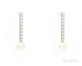 Bellissimi orecchini in oro bianco 18 carati (750/000) peso totale 4,2 grammi, con perle e diamanti.