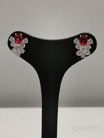 1) Orecchini in oro bianco 18 carati (750/1000) con rubini di caratura totale di 2,20 carati circa e diamanti naturali taglio brillante di caratura totale di 1,80 carati, colore F/G, purezza SI1/SI2.
