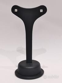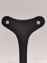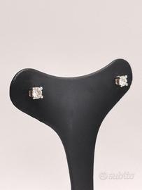 2) Orecchini modello punto luce in oro bianco 18KT con montatura a griffe su cui sono incastonati diamanti sintetici taglio brillante di caratura totale di 0,40 punti.