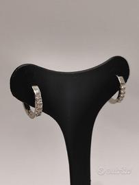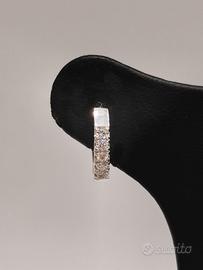 1) Orecchini a cerchio in oro bianco 18 carati (750/1000) con diamanti sintetici taglio brillante di caratura totale di circa 0,40 carati.