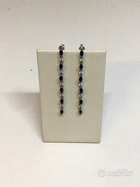 Proponiamo in vendita questi deliziosi orecchini in oro bianco 750 con 6 pietre blu e 5 brillantini alternati.