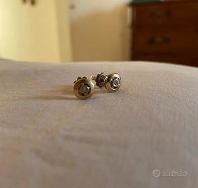 Orecchini in oro giallo 18 kt e diamante centrale.Con chiusura a vite difficile cosi da perdere.