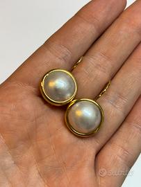 Magnifici orecchini in oro giallo 750 con perle luminose. Peso gr 10,00 Spedizione con scontrino fiscale