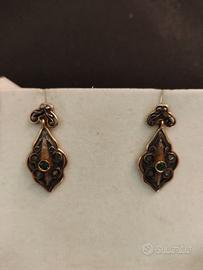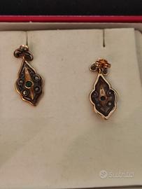 Gli orecchini di ottima ed ormai introvabile fattura orafa presentano ognuno un piccolo smeraldo per 0,10 punti di carato e 4 diamanti con taglio a rosa (antico taglio dei diamanti) per un totale di 0.08 carati con chiusura a farfallina.
