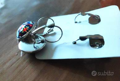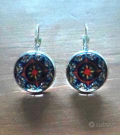 Orecchini tondi in vetro con motivo piastrelle portoghesi azulejos. € 8 il paio, € 15 per la coppia