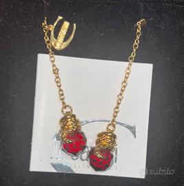 Orecchini lunghi Roberto Cavalli, color oro con pietra rossa. Nuovi con certificato di originalità.