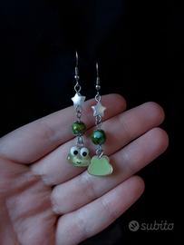 🖤 Orecchini Keroppi, adornati da una perlina verde e una stellina perlata