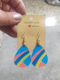 orecchini legno molto leggeri dipinti a mano con colori appositi, colorati allegri e simpatici per l'estate che sta arrivando. monachella anallergica
