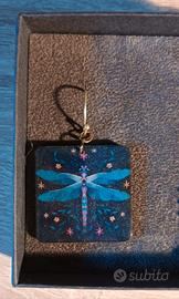 Orecchini in tiglio resinato, farfalla/fungo, con pietre dure, componenti galvanizzati oro 18KT
