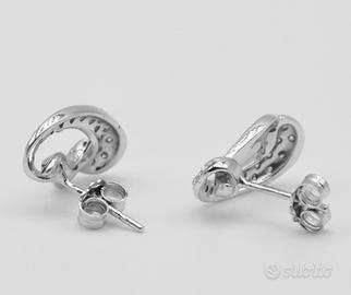 Un’opera di alta artigianalità che fonde design contemporaneo e materiali preziosi. Questi orecchini in oro bianco 18 carati (4,20 grammi) incorniciano il volto con un’eleganza luminosa e senza tempo.