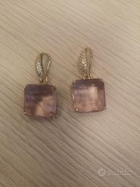 Orecchini fatti a mano. Altissima qualità artigianale. Orecchini in ottone galvanizzato oro, con piccoli zirconi e pietra di cristalllo sfaccettato color rosa. Lunghezza totale di 3,5 cm di cui la dimensione della sola pietra di 1,5cm x 1,5cm. Molto luminosi. Pezzo unico. Venduto in un sacchetto curato, ottimi anche come idea regalo. Prodotto ipoallergenico e nichel free. Disponibili anche in altri colori su richiesta. # creazioniartigianali