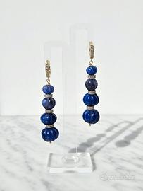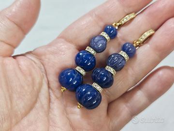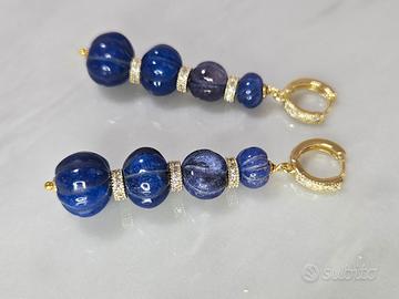 Orecchini lunghi con zaffiri naturali, blu e oro