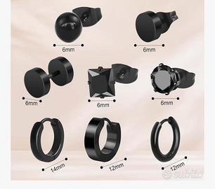 Vendo 8 paia di orecchini Unisex in acciaio inossidabile colore nero di varie misure in ottime condizioni. Fornisco scatolina dove contenerli e bustine. A disposizione per eventuali foto/informazioni tramite messaggio Subito.