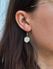 Orecchini con pendente margherita creati a mano con la tecnica del micro uncinetto 🌼