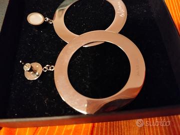 Orecchini a cerchio pendente in argento con dettaglio finta madreperla, completi di scatola originale.