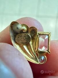 Elegante coppia di orecchini a lobo in oro giallo 18 carati (750), caratterizzati da un design a ventaglio tipico dell'alta gioielleria vicentina degli anni '80/'90. Prodotti nel cuore del distretto orafo di Vicenza, presentano il punzone di fabbrica "1315 VI" e il marchio MDC. Lavorazione scanalata a raggiera con incastonate pietre dal taglio geometrico (stile baguette/emerald) di un delicato color rosa/ametista chiaro, sormontate da un punto luce brillante.