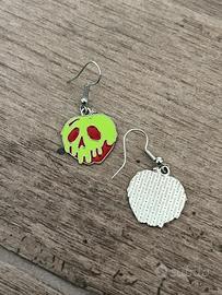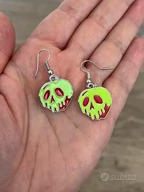 Orecchini pendenti dal design ispirato alla mela avvelenata delle fiabe, perfetti per chi ama accessori dark, gotici o fiabeschi.