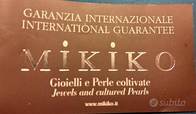 Bellissimi orecchini Mikiko in oro 18k e perle di acqua dolce - diametro perle 12/13 mm, lunghezza orecchini 5 cm, peso 8g - in ottimo stato con scatola e certificato originale timbrato dal gioielliere. La scatola ha leggeri segni di usura, gli orecchini, usati pochissime volte, sono perfetti.