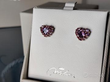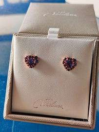 Miluna ERD2937 orecchini cuore a lobo in argento con ametista Miluna ERD2937 orecchini in argento 925/1000 placcati oro rosa, linea Gemma del cielo, con due ametiste viola naturali taglio cuore 5 millimetri e caratura complessiva di 0,80 e ventidue ametiste viola naturali di caratura 0,24 totale. La chiusura è a perno con farfallina. NUOVO IN CONFEZIONE ORIGINALE CON GARANZIA. Vendo causa: regalo non gradito, non ho i buchi alle orecchie