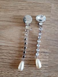 Orecchini Miu Miu cristallo argentato e perle, lunghi cm 8, con clip. Visionabili zona Firenze sud Gavinana. Spedibili