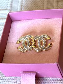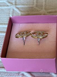 Orecchini simil brand zirconati in acciaio inossidabile in gold con chiusura con gommino! Nuovi!