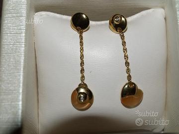 Orecchini in argento "shine" dorato mai indossati Caratteristiche: - orecchini in argento placcati in oro giallo - parte circolare con catenella e ciondolo circolare - applicazione con zircone - chiusura a farfalla - logo naturalmente è inclusa anche la scatola.