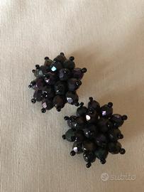 Orecchini con pietre nere cangianti modello bottone Con clips