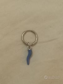 Orecchini diversi, 1 cerchietto nero in acciaio, 1 cerchietto con cornicello blu pendente in acciaio, e 1 cerchietto in argento indiano. Tutti nuovi. Il prezzo è per tutti e 3 insieme.