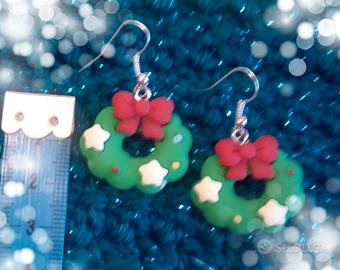 Orecchini natalizi a forma di ghirlanda decorata con stelline, colorati e adatti al periodo di feste.