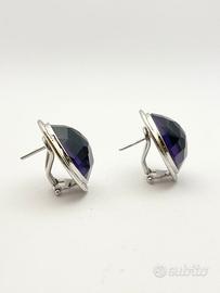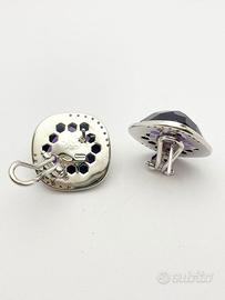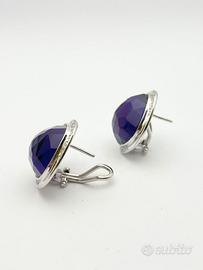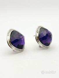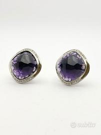 Orecchini in oro bianco 18 KT ( 750 ‰ ) di grammi 18.00 impreziositi da ametiste naturali taglio sfaccettato e diamanti naturali forma tonda e taglio a brillante, a scritta CREA.