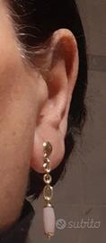 Deliziosi e raffinati orecchini in oro 18kt con barilotto di corallo rosa sfaccettato. Lunghezza 4cm. Gr. 3.44
