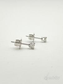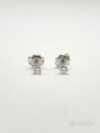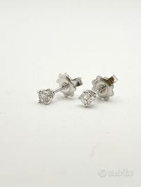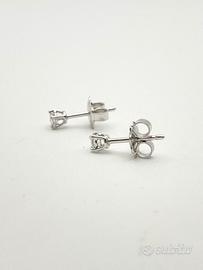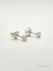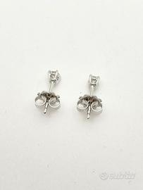 Orecchini puntoluce in oro bianco 18 KT ( 750 ‰ ) di grammi 1.20, con diamanti naturali forma tonda taglio a brillante di ct 0.20 totali; purezza VS colore G.