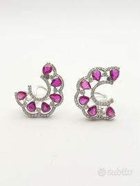 Orecchini in oro bianco 18 KT ( 750 ‰ ) di grammi 6.35 con rubini naturali forma a goccia taglio sfaccettato ct 3.12 totali e diamanti naturali forma tonda e taglio a brillante ct 1.02 totali; purezza VVS colore G.