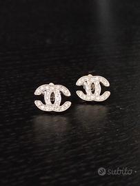 1) Orecchini a lobo modello Chanel realizzati in oro bianco 18 carati (750/1000), con diamanti naturali taglio brillante di caratura totale di 0,20 carati, colore G/H, purezza SI1/SI2.