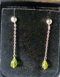 Orecchini Oro Bianco 18 kt e peridoto taglio a goccia sfaccettato. Con bustina e cofanetto.