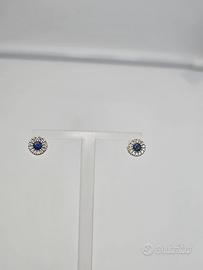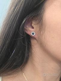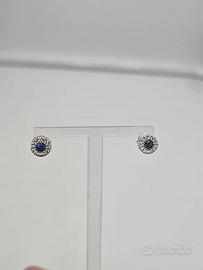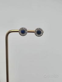 Meravigliosi orecchini a lobo con chiusura a farfalla in oro bianco massiccio 18 carati con zaffiro centrale taglio brillante di 0,5 carati e 15 diamanti taglio brillante intorno su ciascun orecchino.