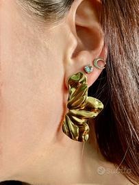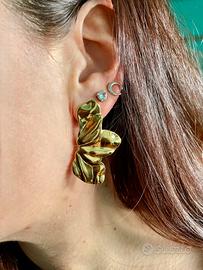 Orecchini statement color oro forma martellata foglia o petalo. Molto eleganti Materiale : acciaio inox Nuovi mai insoddati
