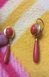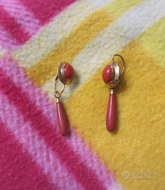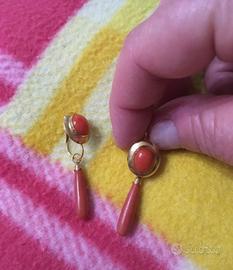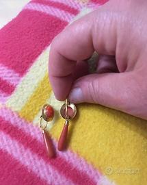 Orecchìni oro giallo e corallo rosso