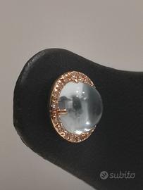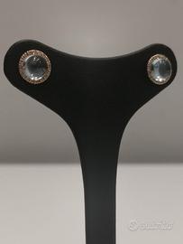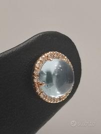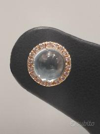 Orecchini a lobo in oro rosa 18 carati (750/1000) con topazi azzurri e diamanti naturali taglio brillante di caratura totale di 0,10 carati, colore F/G, purezza SI1/SI2.